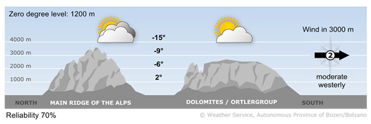 At first, the sun will still shine frequently in the mountains. During the course of the day, clouds will roll in from the north-west and there may be light snowfall on the border with North Tyrol.